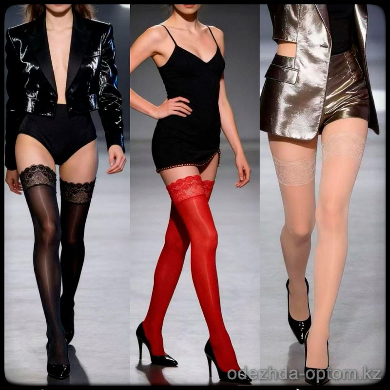 b5-F02 Чулки женские с ажурной резинкой, стандарт, 1 пара