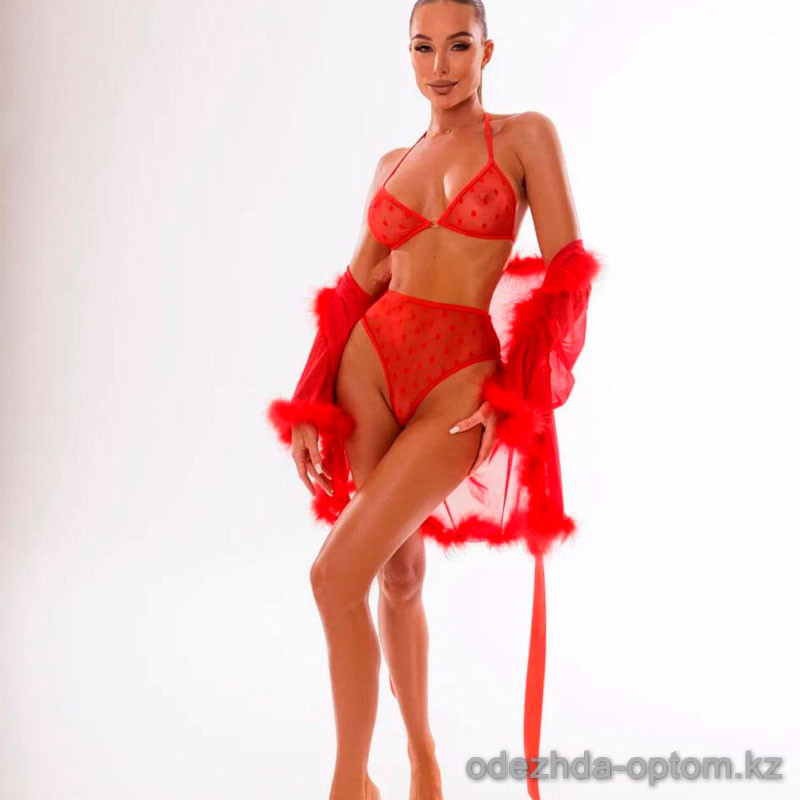 b13-1608 Комплект нижнего белья 3в1: бюстгальтер, трусики и халат, стандарт, 1 пачка (3 шт)
