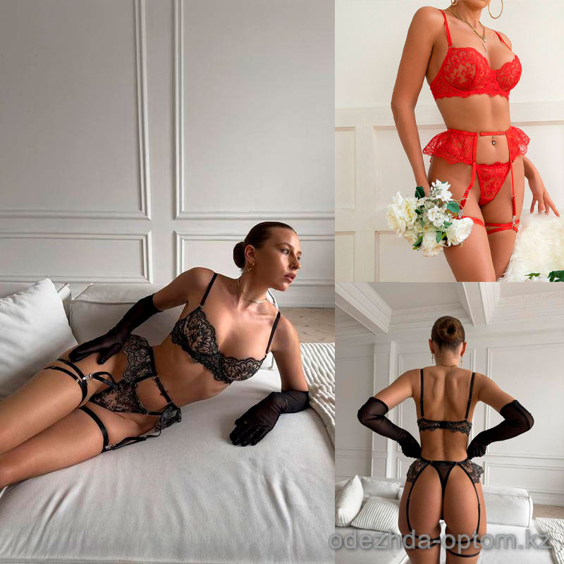 b16-1153 Комплект кружевного нижнего белья в комплекте с перчатками 5в1, M-XL, 1 пачка (3 шт)
