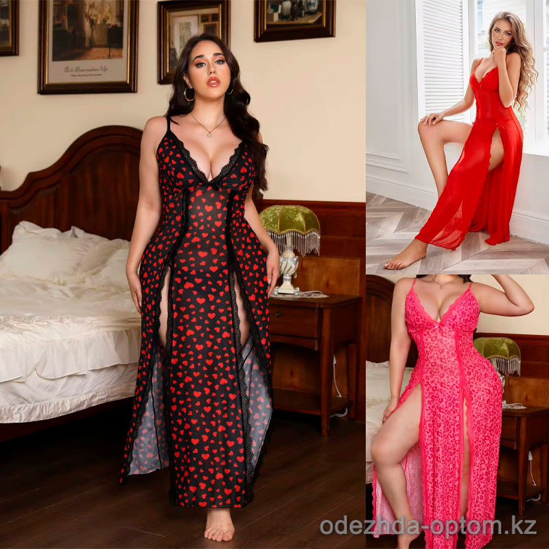 b16-1432 Пеньюар для пышных дам в комплекте со стрингами, XL-3XL, 1 пачка (3 шт)