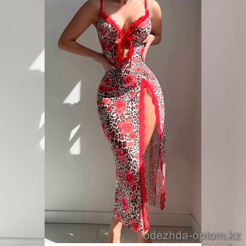 b16-6210 Пеньюар женский длинный с разрезом, M-XL, 1 пачка (3 шт)