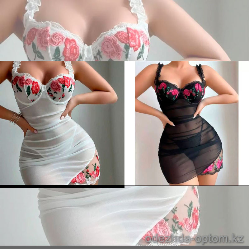 b18-061 Пеньюар женский короткий на бретельках, S-L, 1 пачка (3 шт)