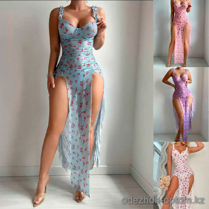 b18-2037 Пеньюар женский длинный с разрезами, S-L, 1 пачка (3 шт)