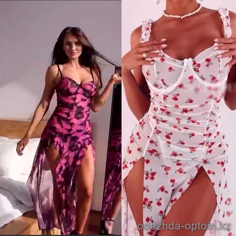 b18-9076 Пеньюар женский длинный с разрезами, S-XL, 1 пачка (4 шт)