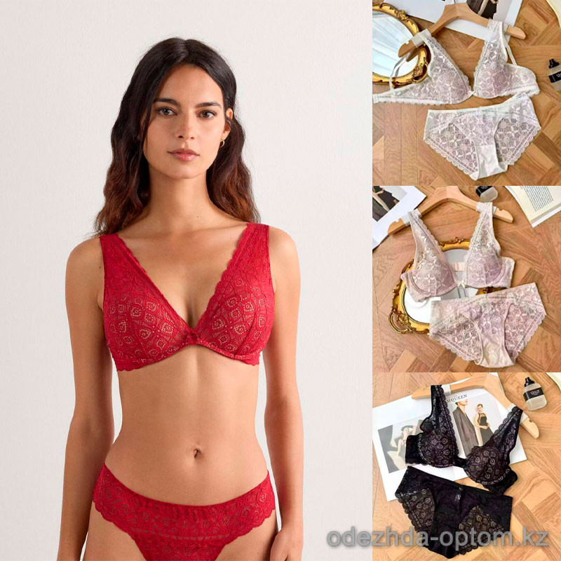 b13-1703 Комплект кружевного нижнего белья: бюстгальтер и трусики, M-XL, 1 пачка (3 шт)