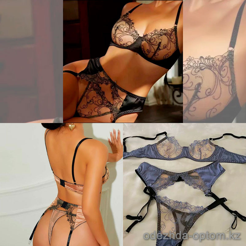 b18-275-1 Комплект кружевного нижнего белья: бюстгальтер, пажи и стринги, S-L, 1 пачка (3 шт)