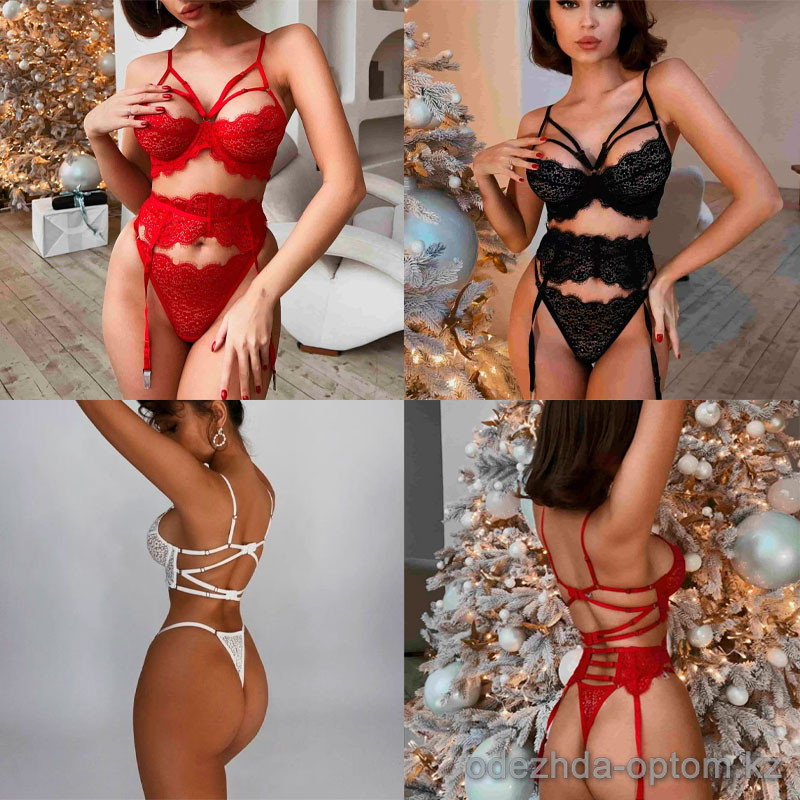 b18-9965 Комплект кружевного нижнего белья: бюстгальтер со стрепами, пояс для чулок и трусики, M-XL, 1 пачка (3 шт)