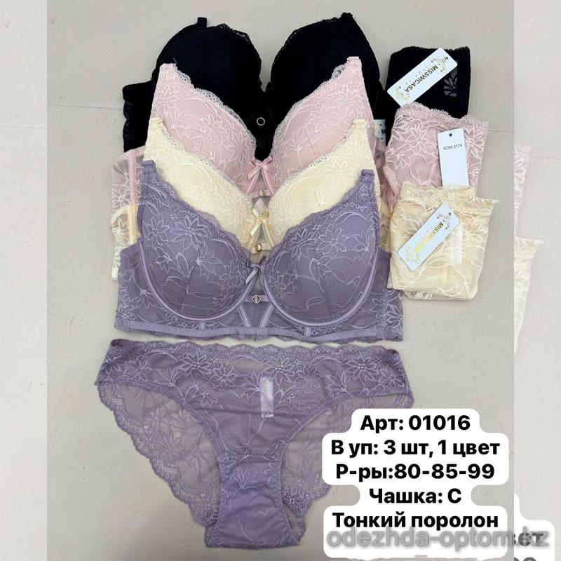 b6-01016 Miss Wicasa Комплект кружевного нижнего белья: бюстгальтер на тонком поролоне и трусики, чашка C, 1 пачка (3 шт)