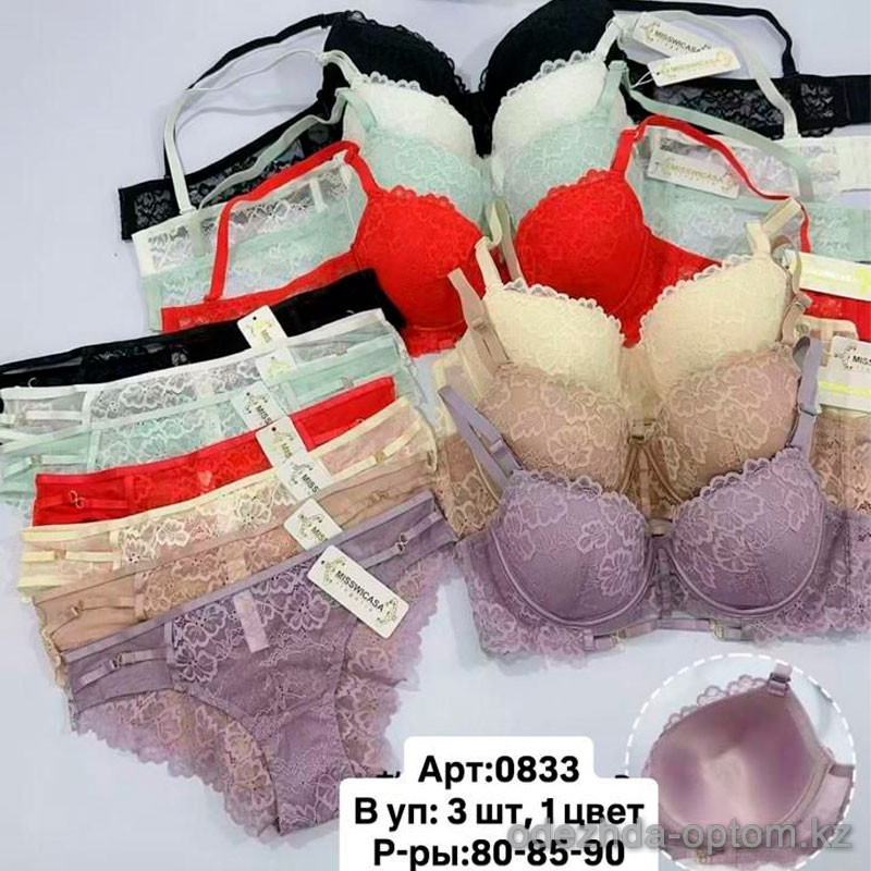 b6-0833 Miss Wicasa Комплект нижнего белья: бюстгальтер на супер тонком поролоне и трусики, чашка C, 1 пачка (3 шт)