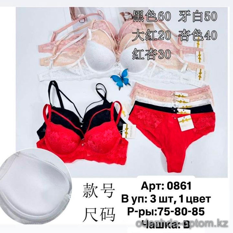 b6-0861 Комплект нижнего белья: бюстгальтер и трусики, чашка B, 1 пачка (3 шт)