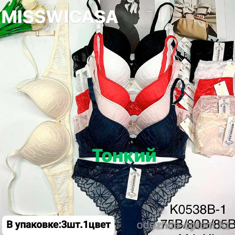 b6-K0538B-1 Miss Wicasa Комплект нижнего белья: бюстгальтер на тонком поролоне и трусики, чашка B, 1 пачка (3 шт)