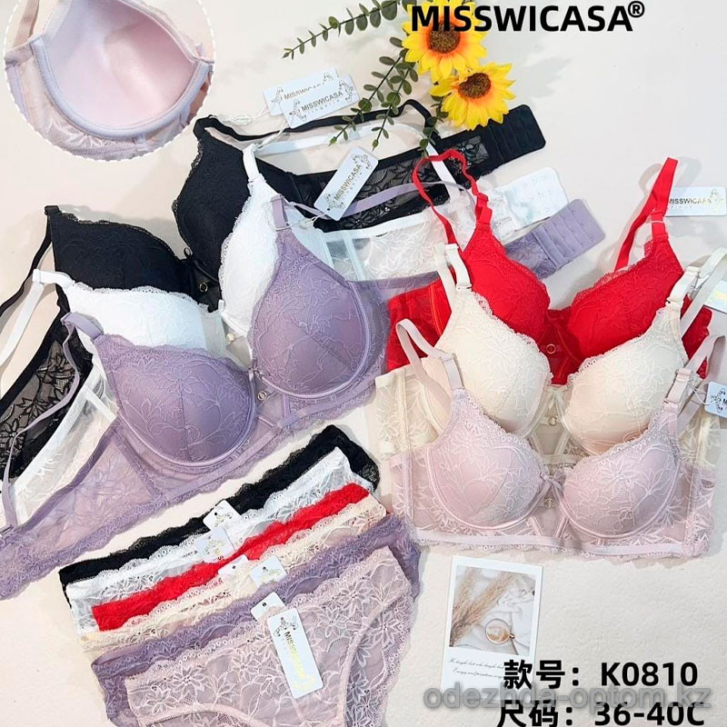 b6-K0810 Miss Wicasa Комплект нижнего белья: бюстгальтер на тонком поролоне и трусики, чашка C, 1 пачка (3 шт)
