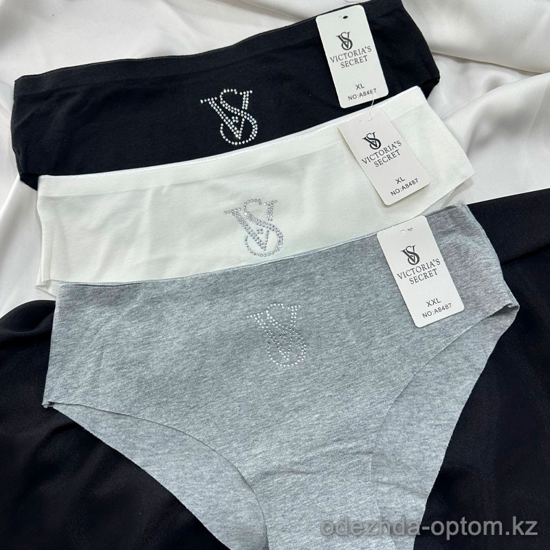 b16-8487 Трусики женские однотонные с эмблемой из страз, XL-3XL, 1 пачка (12 шт)