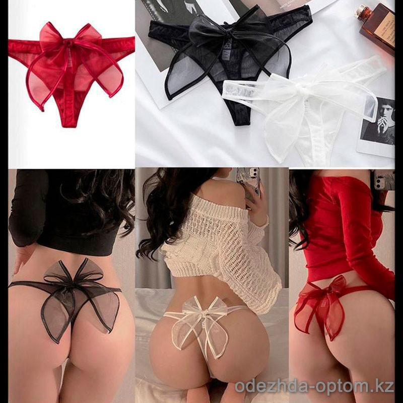 b5-c39 Трусики женские стринги с бантом, M-XL, 1 пачка (6 шт)