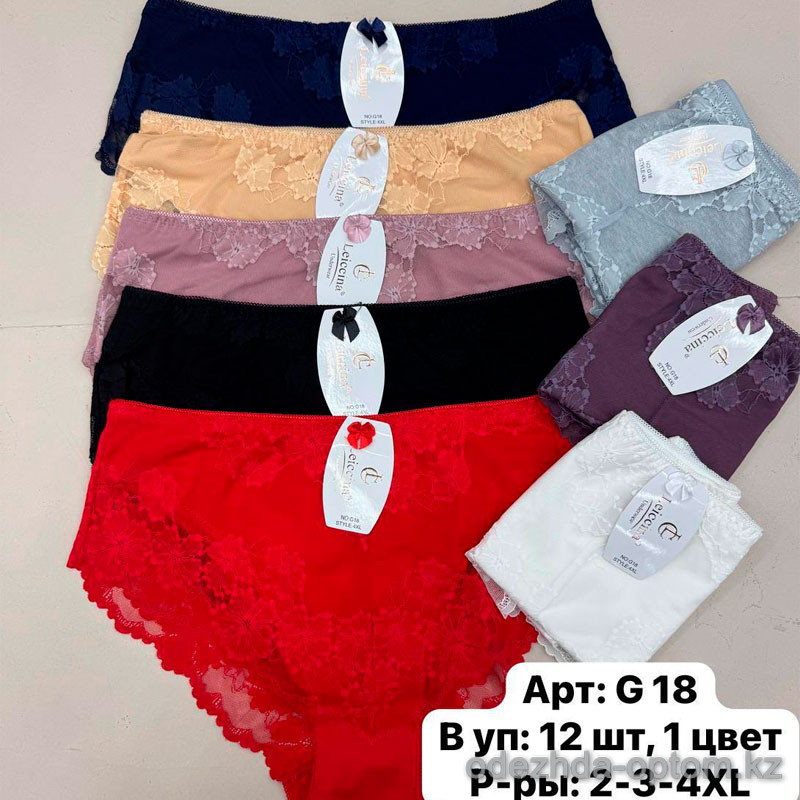 b6-G18 Трусики женские однотонные, большие размеры, 2XL-4XL, 1 пачка (12 шт)