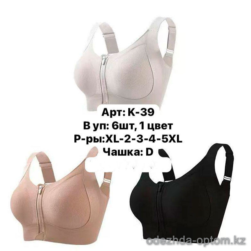 b6-K-39 Топ женский на молнии с поролоном, большие размеры (XL-5XL), чашка D, 1 пачка (6 шт)