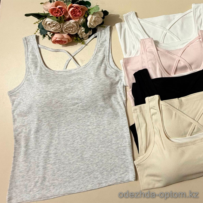 d7-0157 Майка женская на бретельках с чашечками, стандарт (44-48), 1 пачка (5 шт)