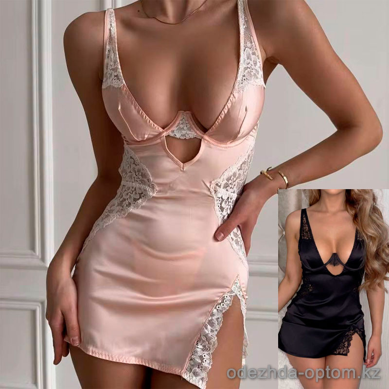 b13-1501-1 Пеньюар женский короткий с разрезом, S-L, 1 пачка (3 шт)