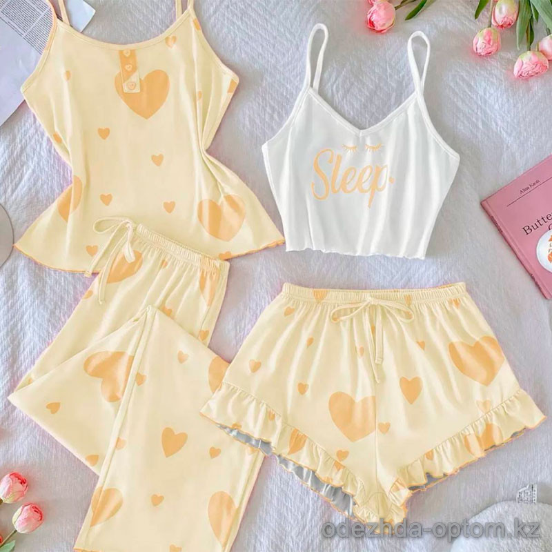 b13-35014 Комплект женской пижамы 4в1: майка, топ, шорты и штаны, размер M, 1 шт