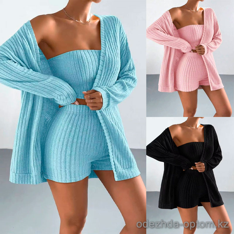 b13-57171 Комплект женской одежды: кардиган, топ и шорты, размер M, 1 шт