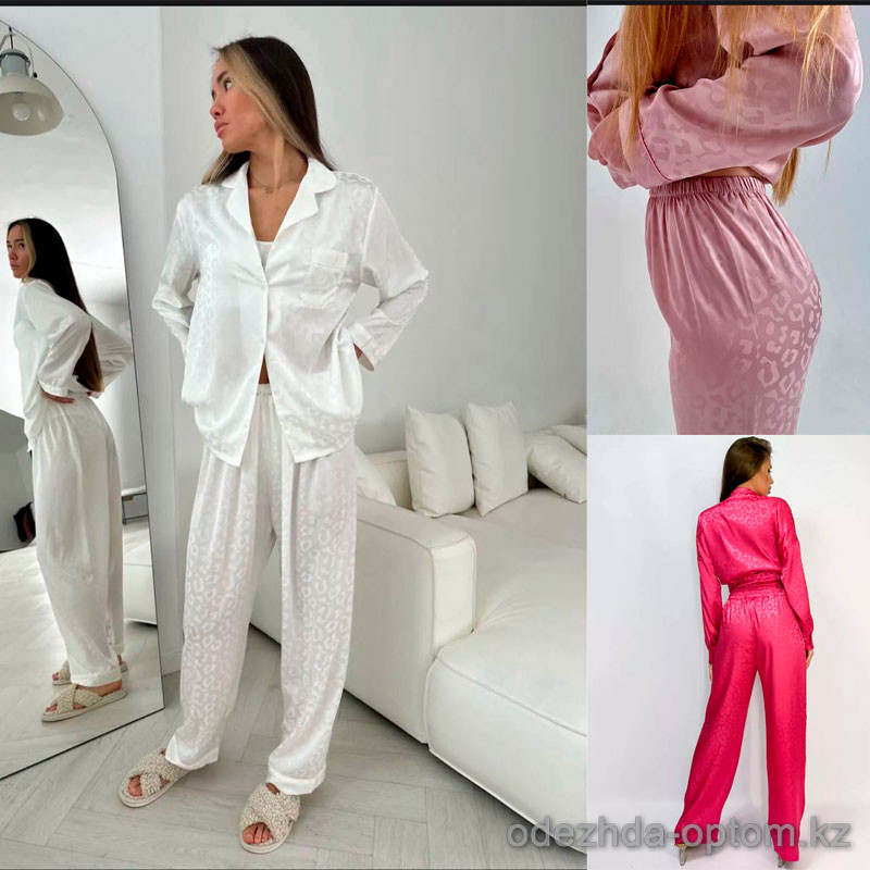 b15-11091 Комплект женской шелковой пижамы: рубашка и штаны, M-2XL, 1 пачка (4 шт)
