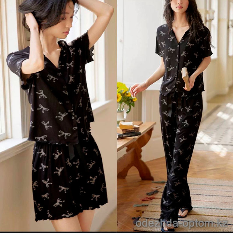 b15-2530-2 Комплект женской одежды для сна 3в1: кофта, шорты и штаны, 42-48, 1 пачка (4 шт)