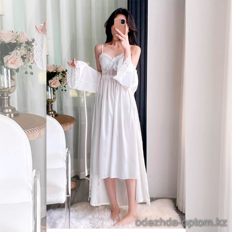 b15-2689 Комплект женской шелковой одежды для сна: халат и сорочка, M-XL, 1 пачка (3 шт)