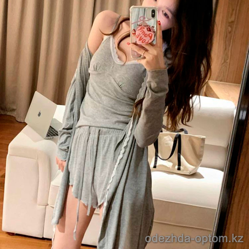 b15-3017-1 Комплект женской одежды для сна 3в1: халат, майка и шорты, M-2XL, 1 пачка (4 шт)