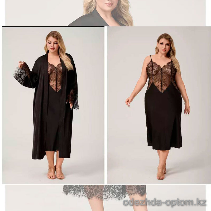b15-3824-1 Комплект шелковой для крупных дам: халат и сорочка, 2XL-4XL, 1 пачка (3 шт)