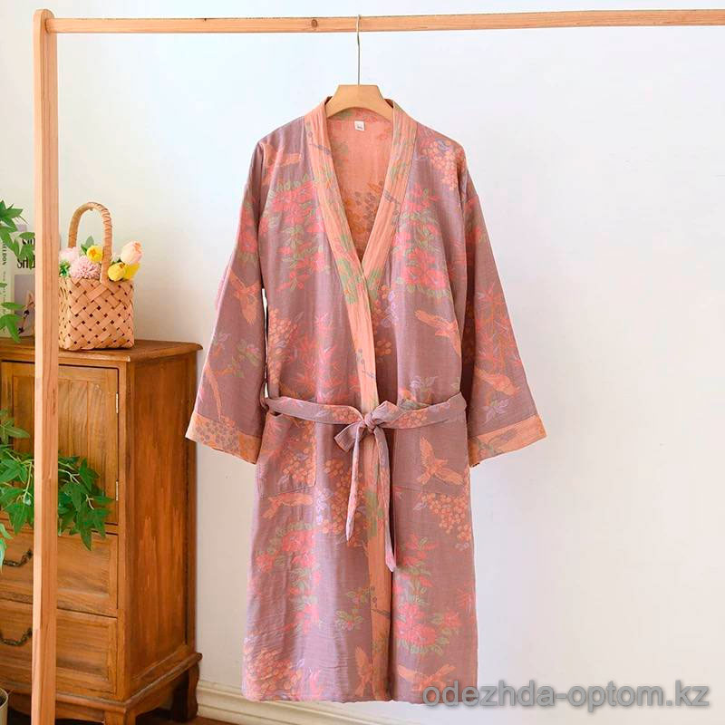 b15-405-6 Халат женский муслиновый с длинными рукавами, M-L, 1 пачка (2 шт)