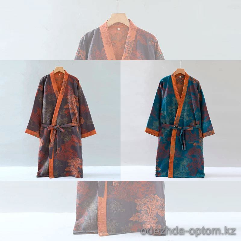 b15-4056 Халат женский муслиновый с длинными рукавами, M-L, 1 пачка (2 шт)