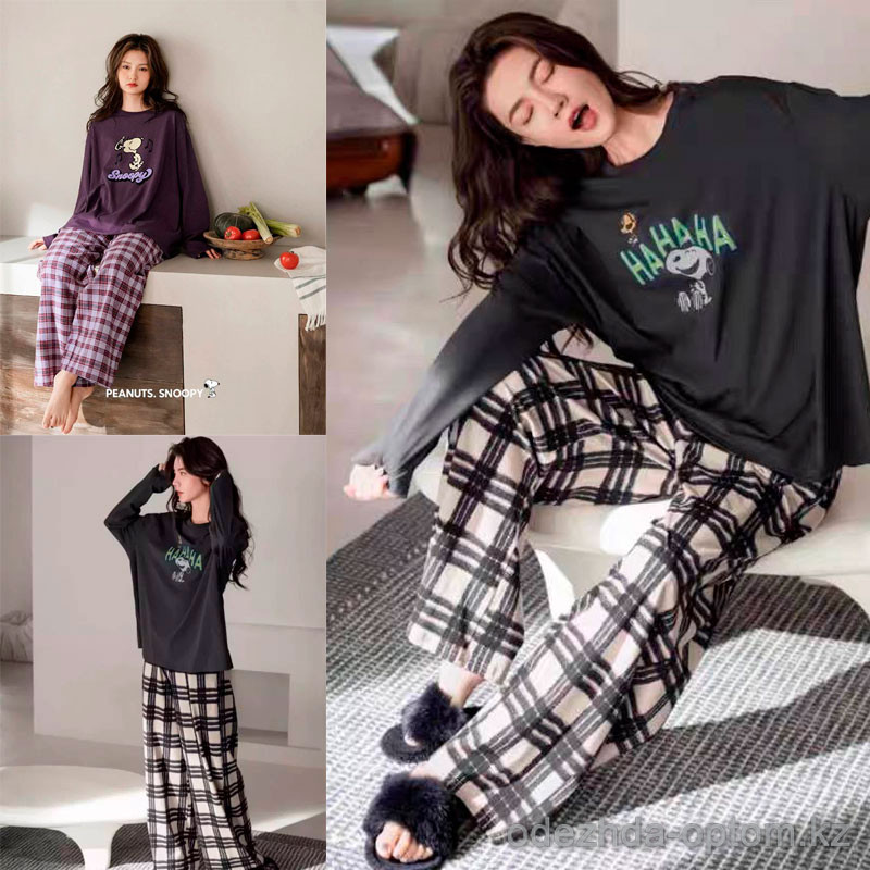 b15-673 Комплект женской пижамы: кофта и штаны свободного кроя, M-XL, 1 пачка (3 шт)