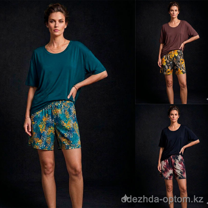 b15-72245-1 Комплект женской одежды: футболка и шорты, стандарт (44-50), 1 пачка (3 шт)
