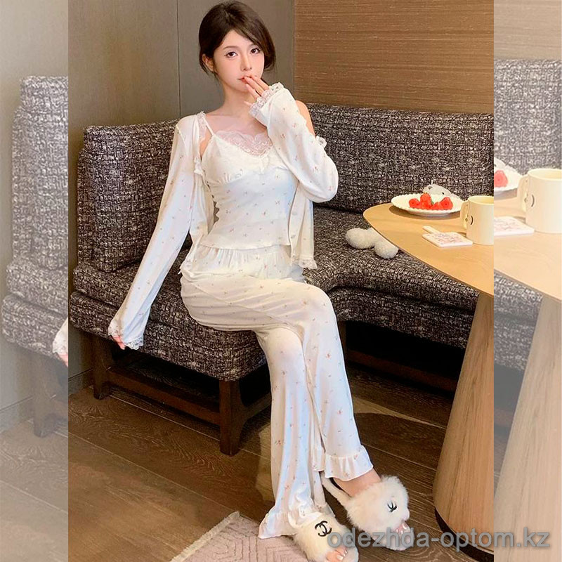 b15-7374 Комплект женской пижамы 3в1: кофта, майка и штаны, M-XL, 1 пачка (3 шт)