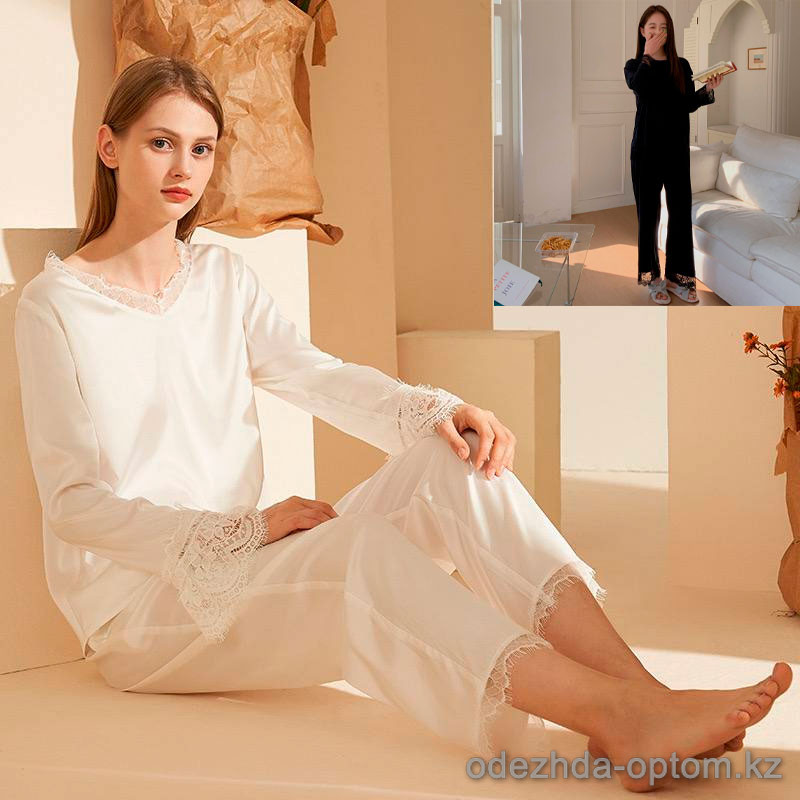 b15-7729 Комплект женской шелковой пижамы: рубашка и штаны, L-XL, 1 пачка (2 шт)