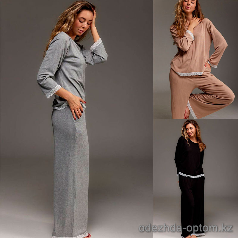 b15-82369 Комплект женской пижамы: кофта и штаны, стандарт (до 52), 1 пачка (3 шт)