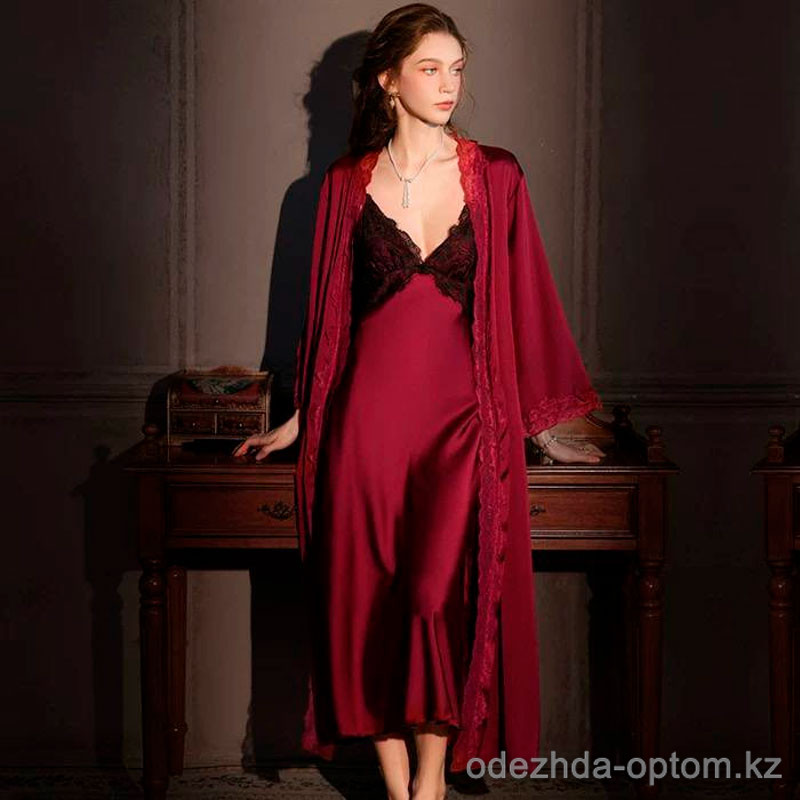 b15-8355-2 Комплект женский шелковый для сна: халат и сорочка, M-XL, 1 пачка (3 шт)
