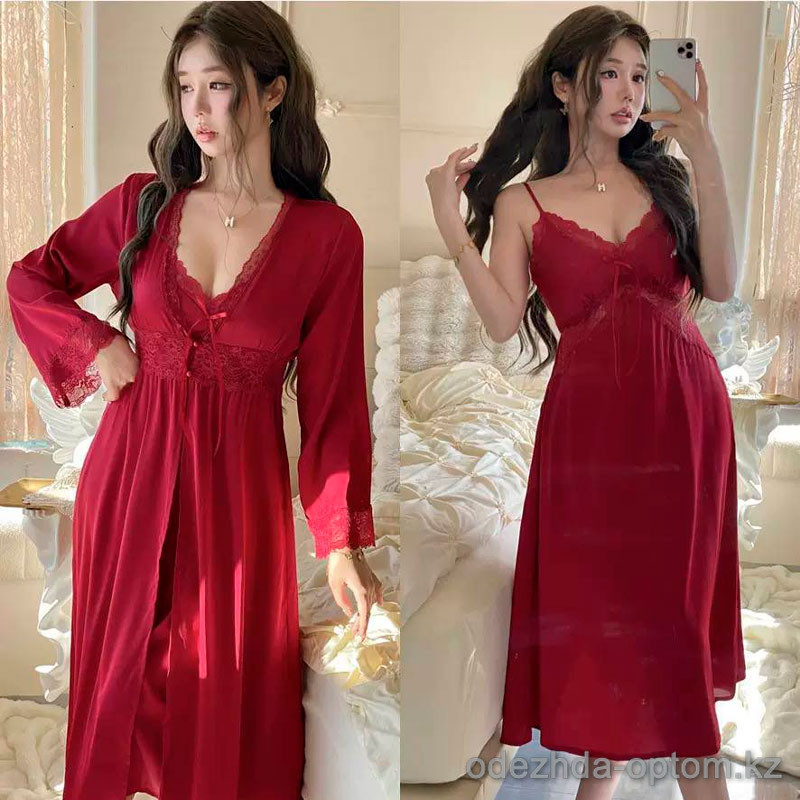b15-8355-4 Комплект женский шелковый для сна: сорочка и халат, M-XL, 1 пачка (3 шт)