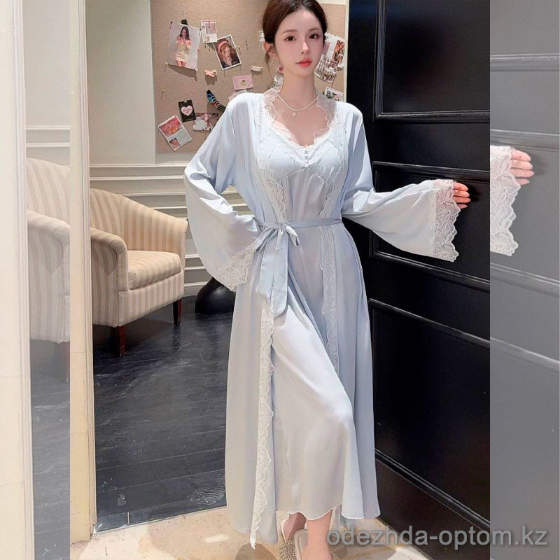 b15-8355-7 Сорочка женская в комплекте с халатом, M-XL, 1 пачка (3 шт)