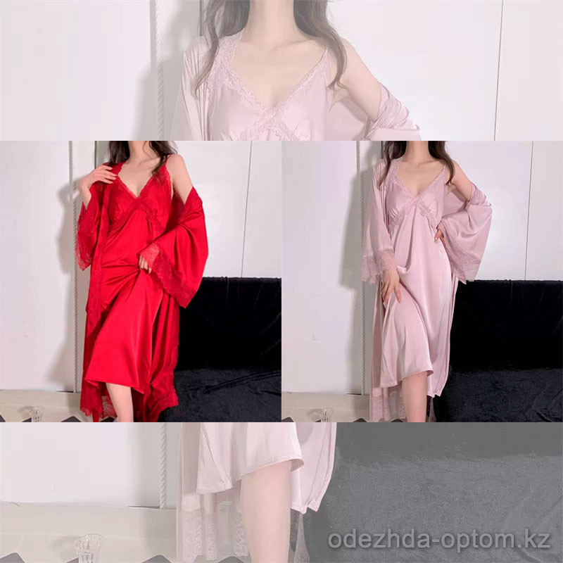 b15-8355 Комплект женский для сна: халат и сорочка, M-XL, 1 пачка (3 шт)