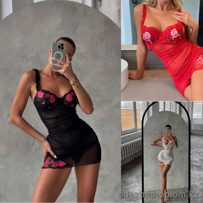 b16-30597 Пеньюар женский полу-прозрачный, M-XL, 1 пачка (3 шт)
