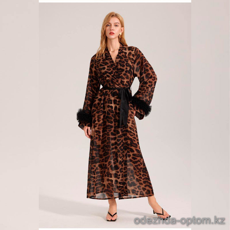 b16-3587 Халат женский длинный шифоновый, стандарт, 1 пачка (3 шт)