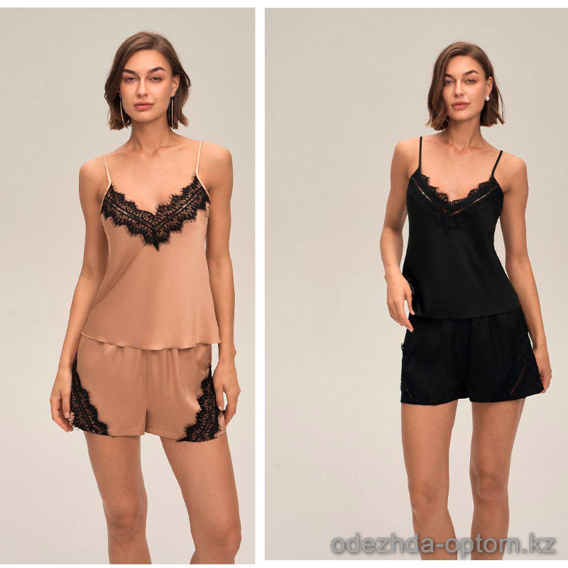 b16-3932 Комплект женской шелковой пижамы: майка и шорты, M-XL, 1 пачка (3 шт)