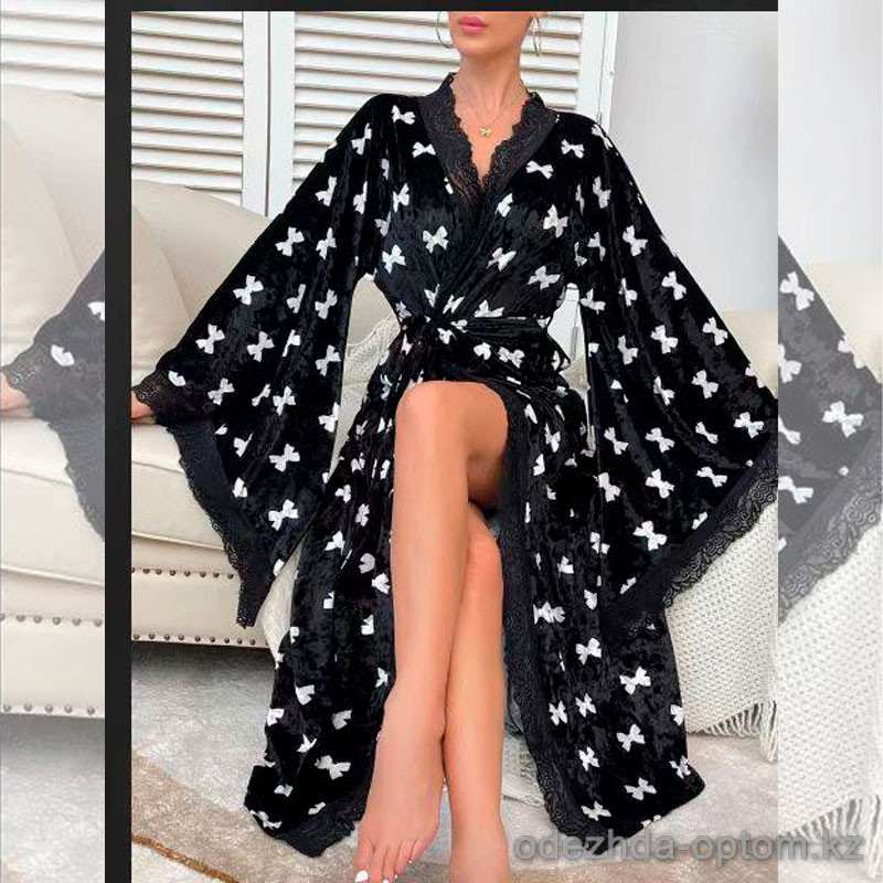 b16-625-1 Халат женский длинный с рукавами клеш, S-L, 1 пачка (3 шт)