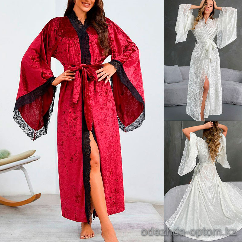b16-625 Халат женский длинный с рукавами клеш, S-L, 1 пачка (3 шт)