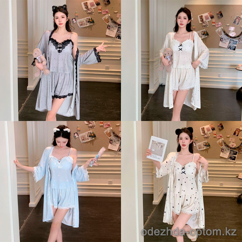 b16-6813-3 Комплект женской пижамы 3в1: халат, майка и шорты, M-XL, 1 пачка (3 шт)