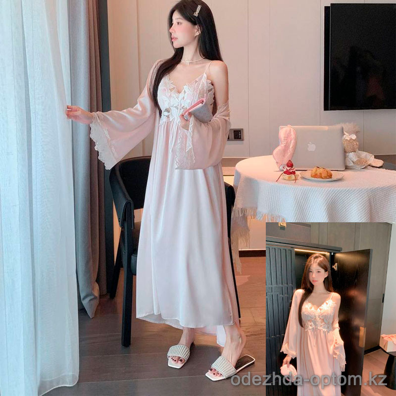 b16-8362 Сорочка женская шелковая в комплекте с халатом, M-XL, 1 пачка (3 шт)