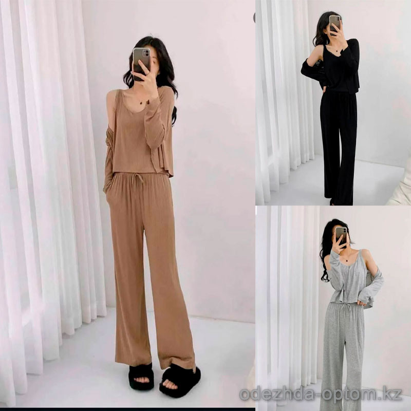 b16-9012 Комплект женской пижамы 3в1: кофта, майка и штаны, M-XL, 1 пачка (3 шт)