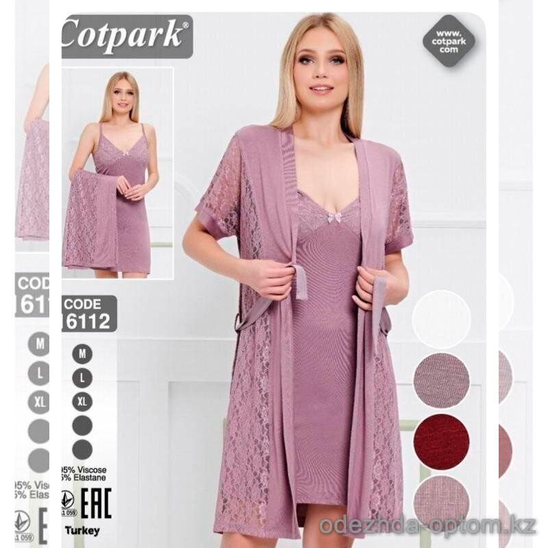 b4-16112 Cotpark Комплект женской одежды для сна: халат и сорочка, M-XL, 1 пачка (3 шт)