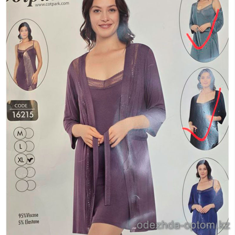 b4-16215 Cotpark Сорочка женская в комплекте с халатом, M-XL, 1 пачка (3 шт)